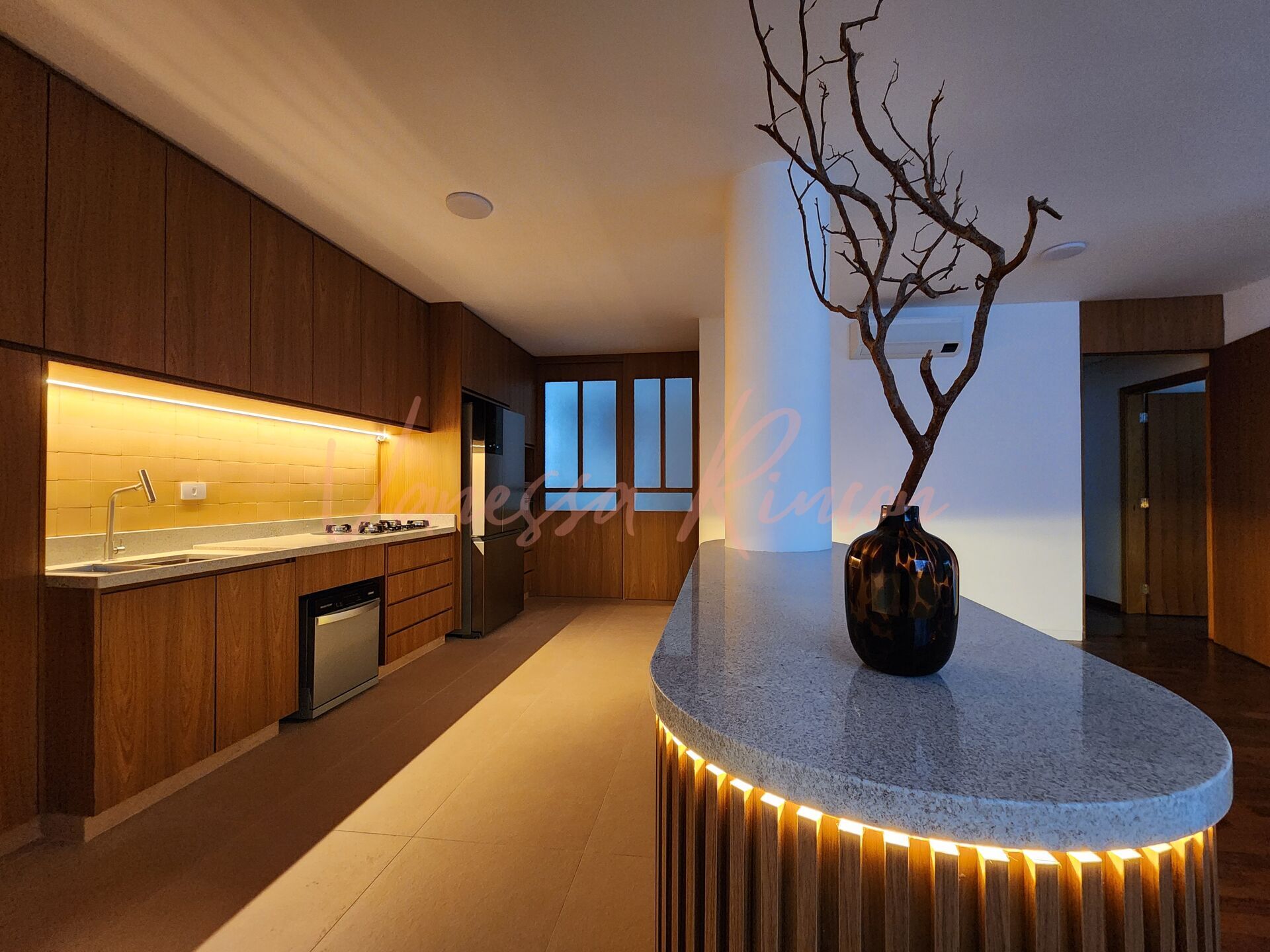 A cozinha é daquelas que encantam, completa, com eletros novos e uma marcenaria impecável, se integra totalmente ao ambiente da sala.